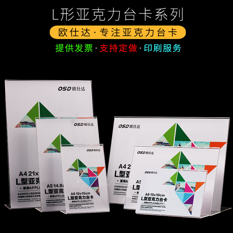 L型展示牌 台签台卡架台牌A4亚克力桌牌 价格牌餐牌菜单牌29.7*21cm 亚克力展示牌酒水牌 高清透明可随意换纸