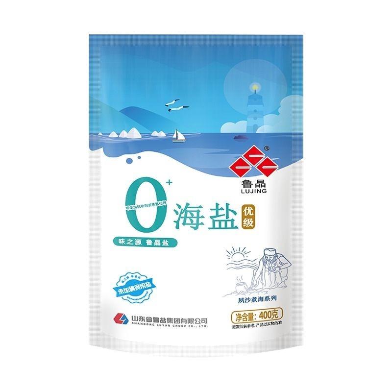 鲁晶无碘盐0添加甄选海盐400g/袋食用盐古海水盐抗结剂大粒精制