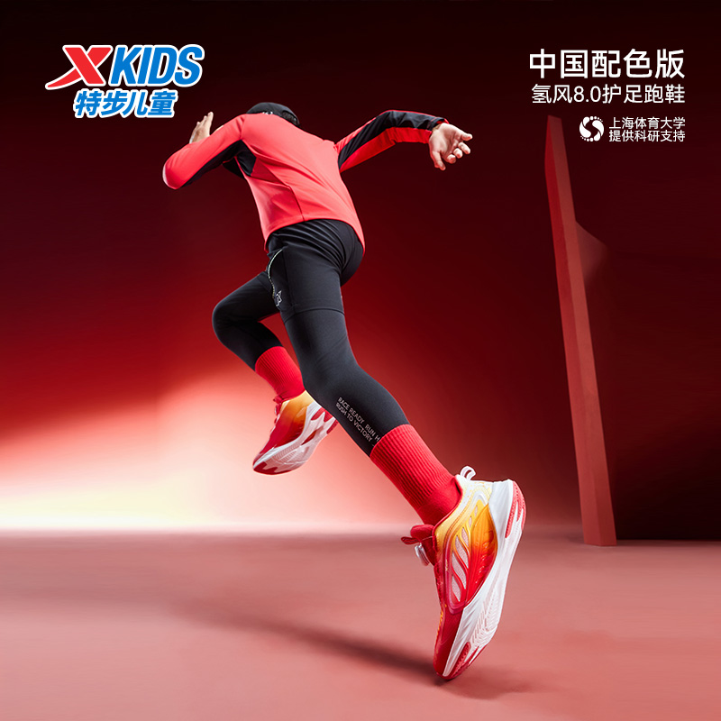 【氢风8.0】特步童鞋儿童运动鞋男童跑步鞋中国红秋季休闲鞋子