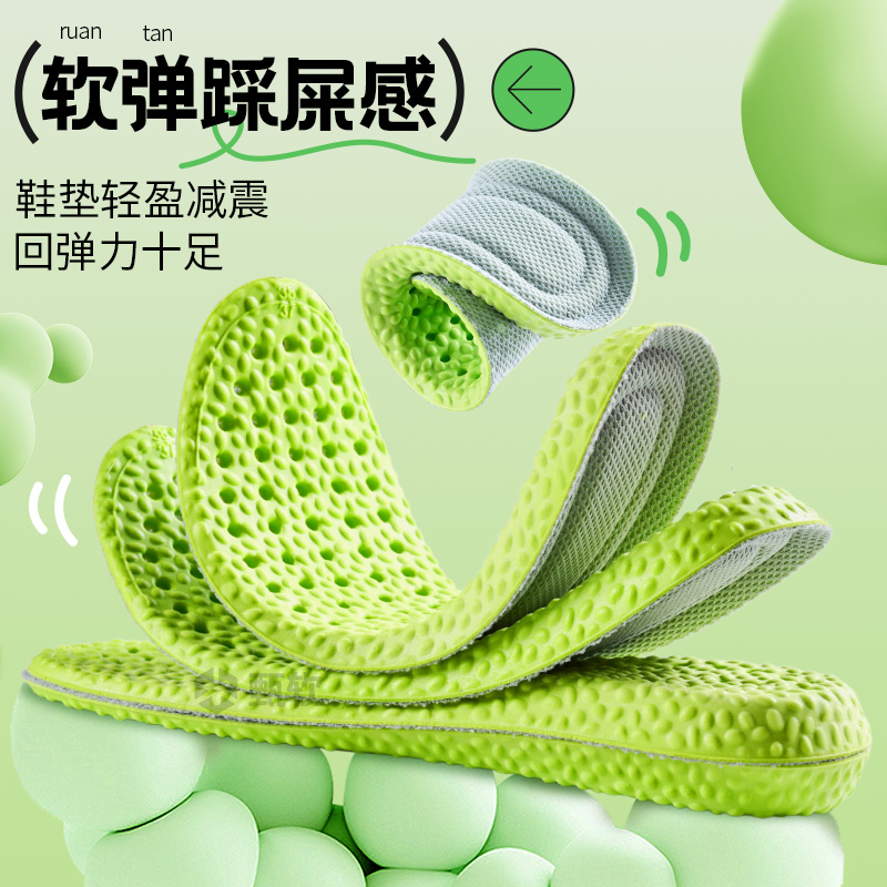 踩屎感鞋垫久站不累软底夏季足弓支撑运动气垫减震吸汗防臭男女款