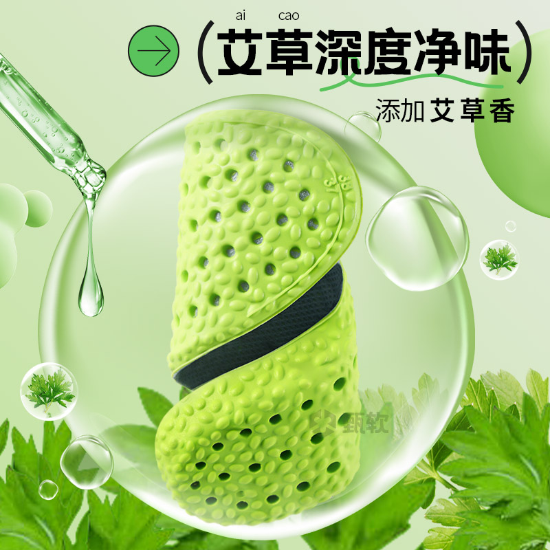 艾草防臭踩屎感运动鞋垫按摩男女通用军训舒适减震软底鞋透气垫子