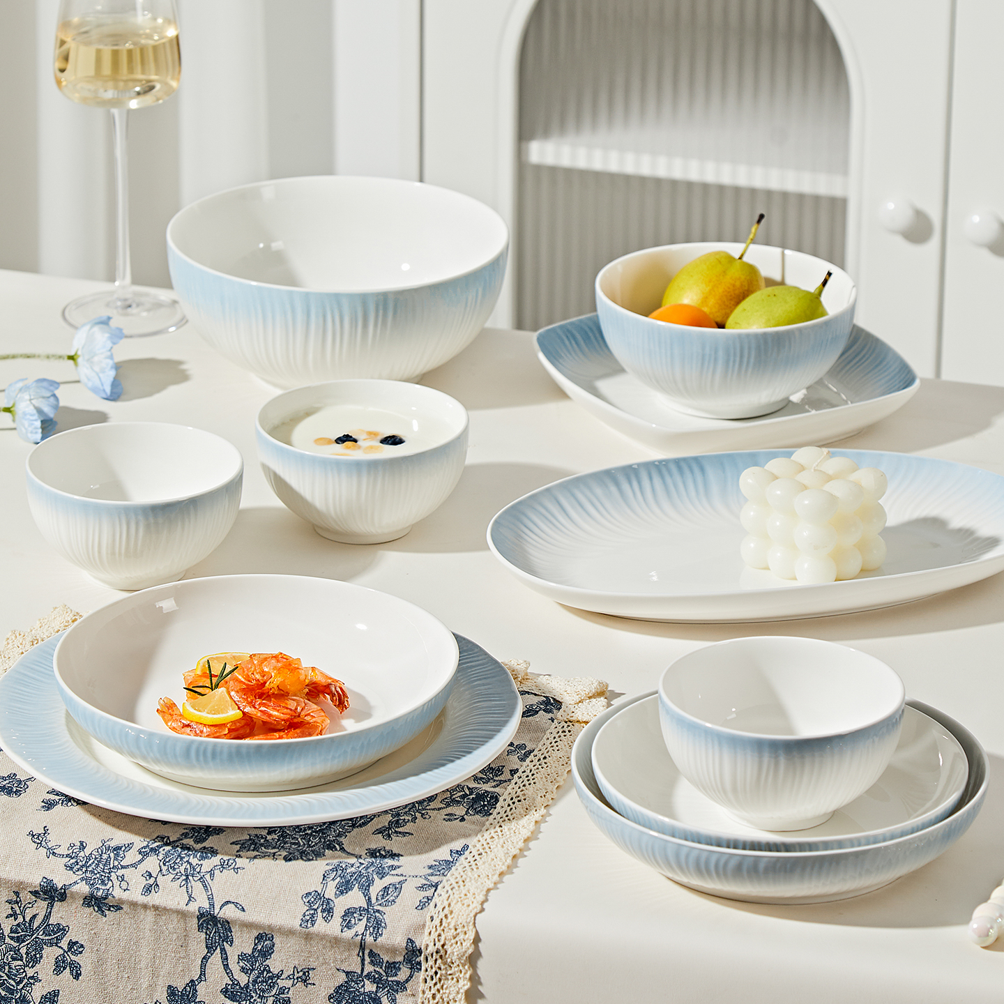 白色盘子菜盘陶瓷餐具碗碟套装家用汤碗大号面碗米饭碗深盘蒸鱼盘