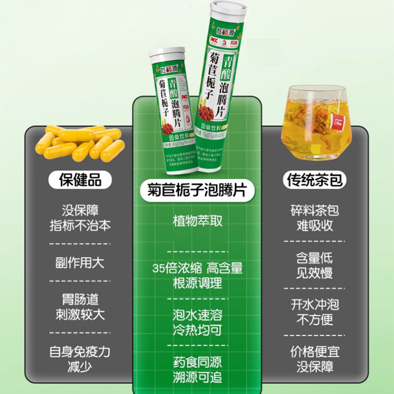 菊苣栀子泡腾片酸友茶饮尿根茶高喝什么降利尿茶包官方旗舰店酸