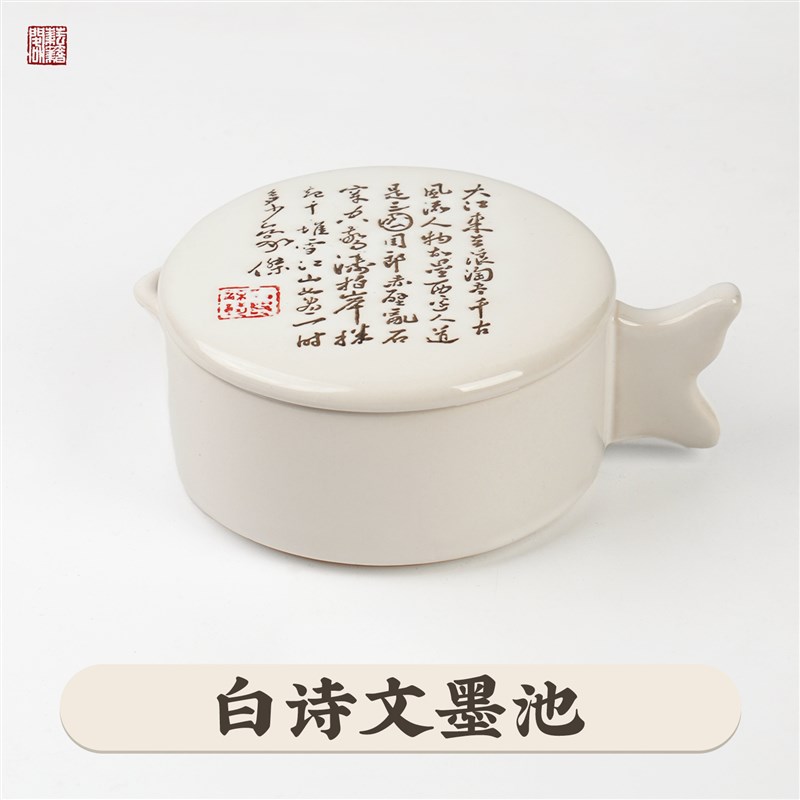 手绘多功能陶瓷墨碟墨池q 学生砚台带盖调色盘颜料碟笔搁 文房四