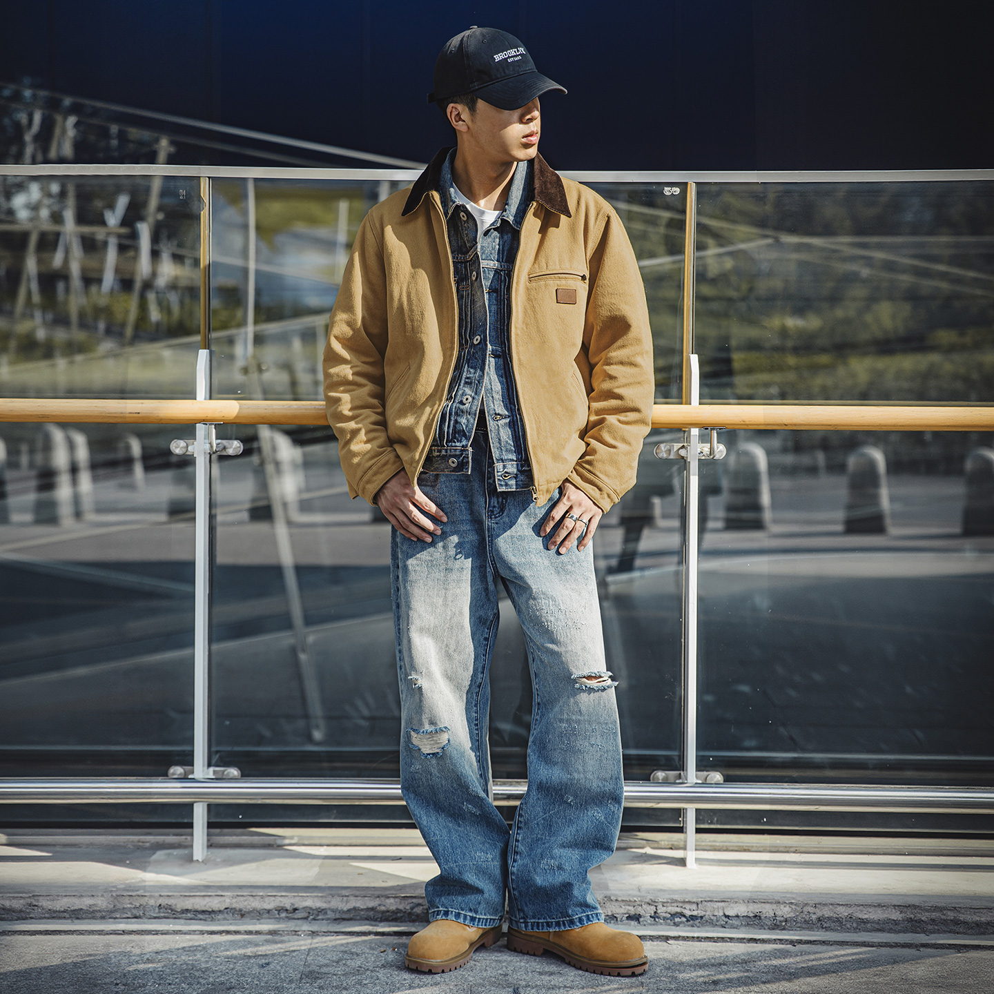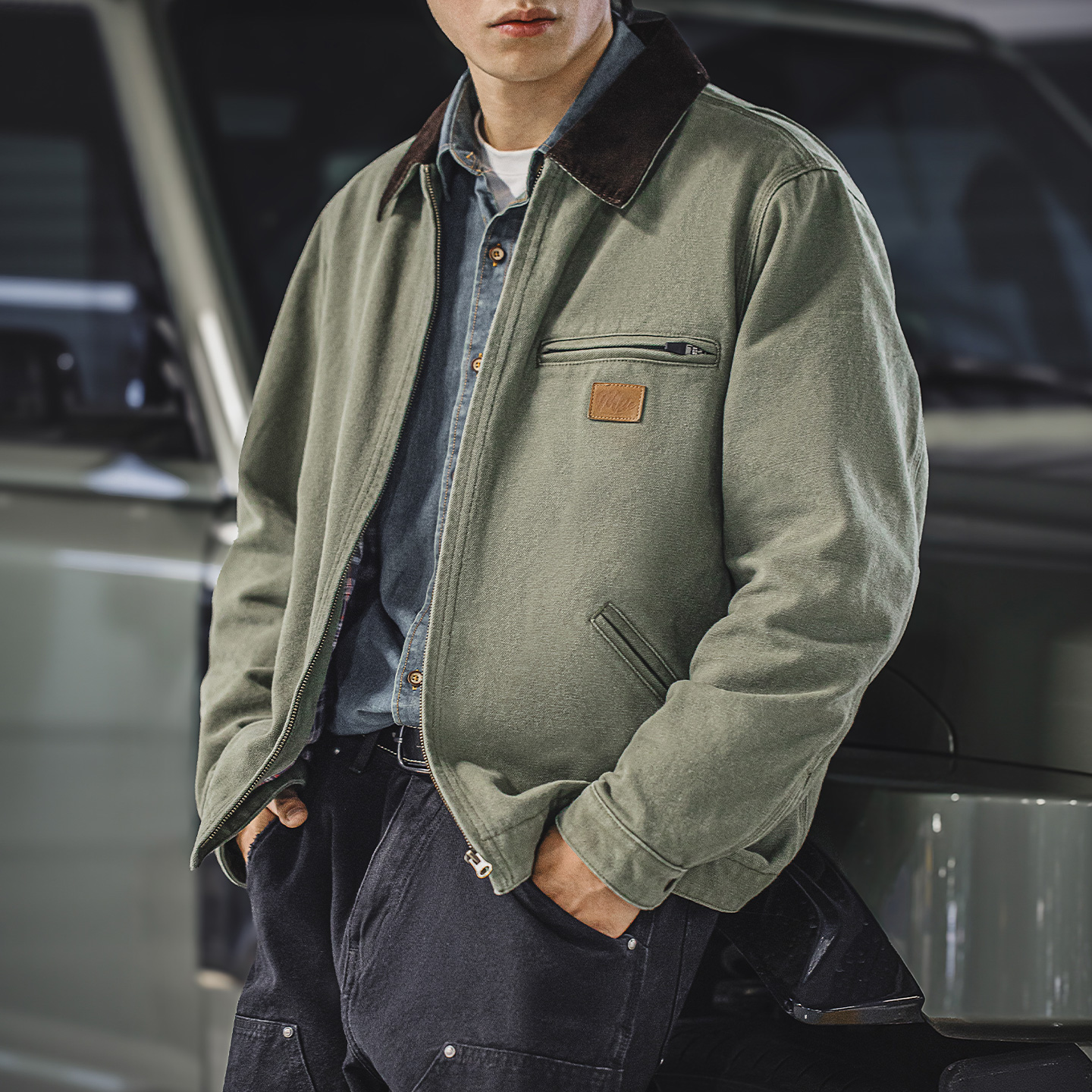 MRA男装 美式复古底特律夹克巴恩风行政翻领谷仓帆布工装外套男秋