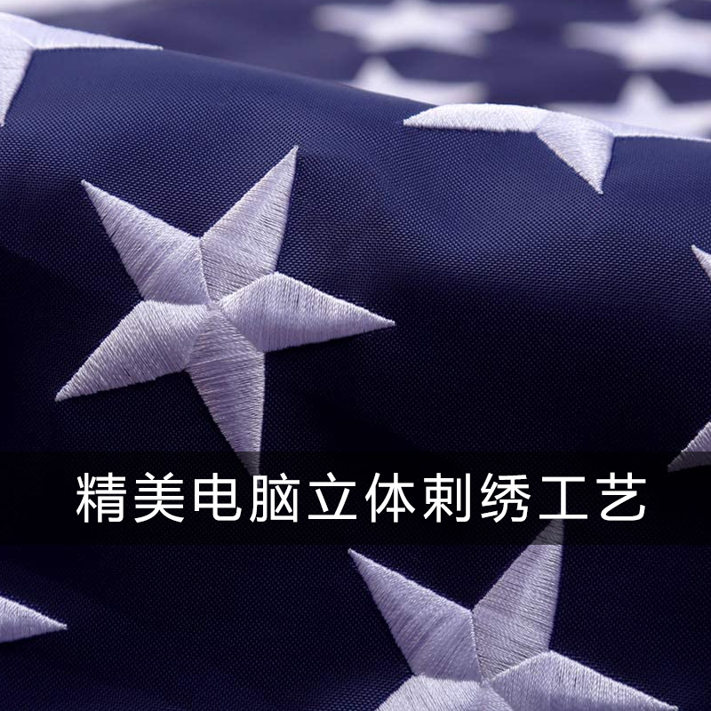 美国刺绣国旗3*5FT批发制作210D牛津布拼接出口款户外悬挂带两个铜扣150*90cm绣花旗帜定制