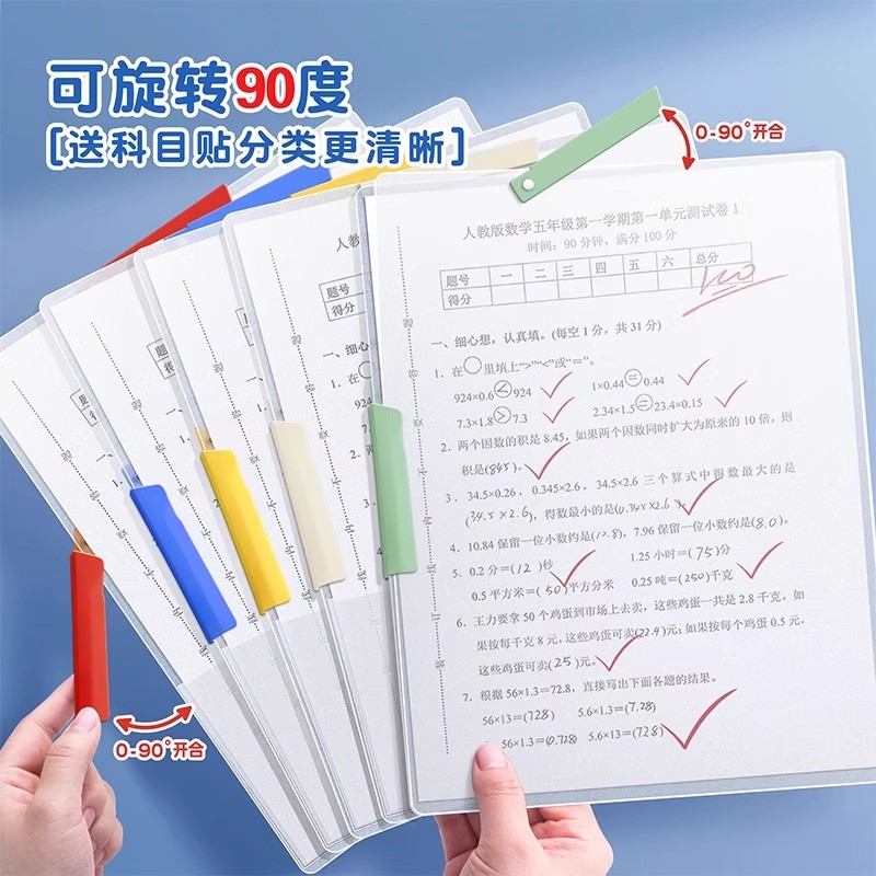 A3双拉杆试卷夹文件夹学生专用卷子收纳整理神器a4资料夹收纳袋旋转抽杆夹试卷整理夹初中生透明插页分类开学