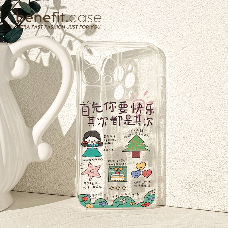 benefit积极文字首先你要快乐17适用于iphone16promax苹果15PRO手机壳13新款14套12简约11透明xsmax硅胶xr防