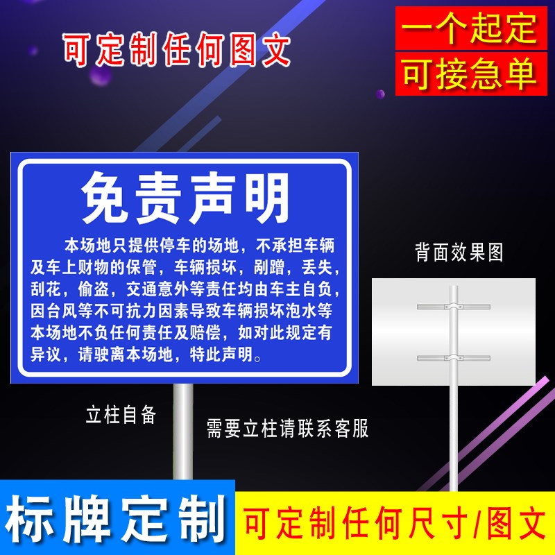 热销车辆停放免责声明公司内部停车场反光标示贴牌铝板指示标志定