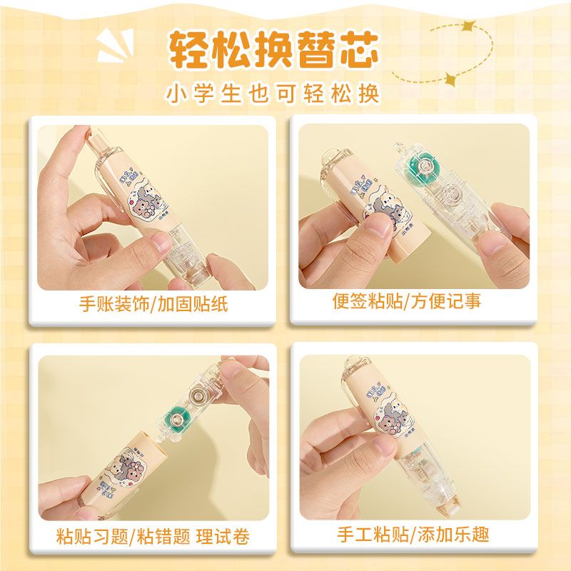 按动式点点胶可换替芯高粘度胶带手账儿童创意DIY手工潜力点状双面胶透明胶带不留痕学生用强力手杖胶带文具