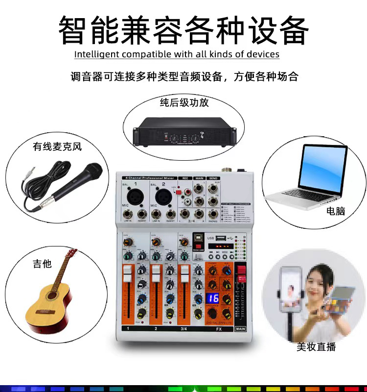 调音台直播声卡OTG手机电脑抖音全民K歌录音混响效果蓝牙KTV演出