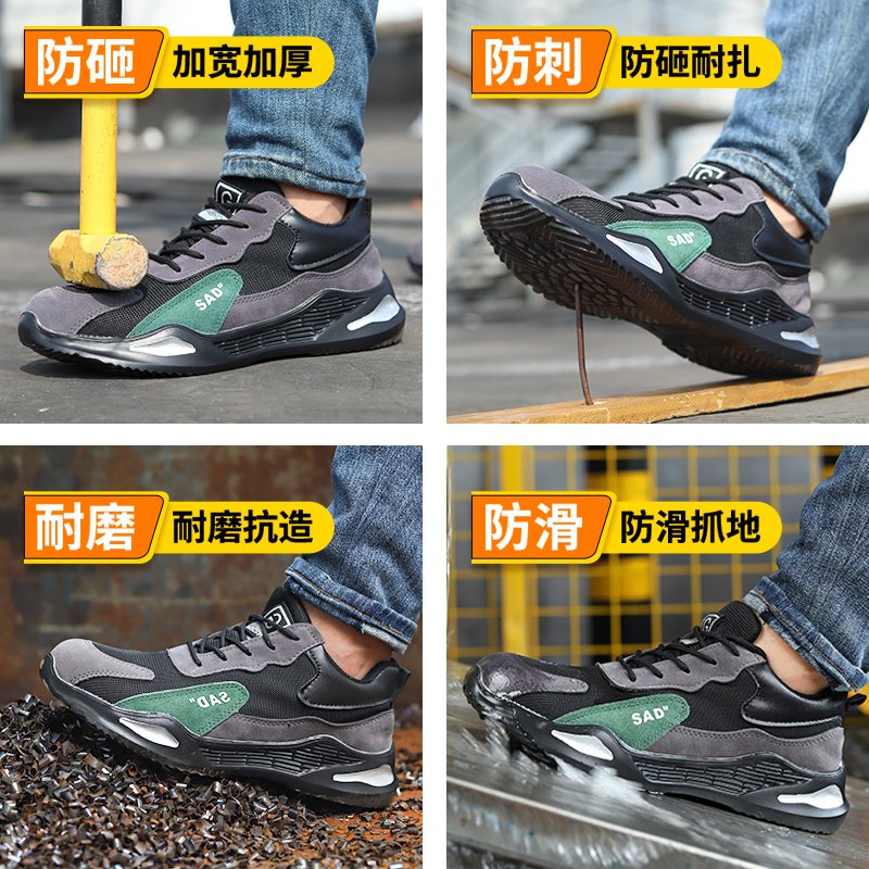 劳保鞋男款轻便防砸防刺穿踩屎感厚底透气久站不累超软底绝缘防臭