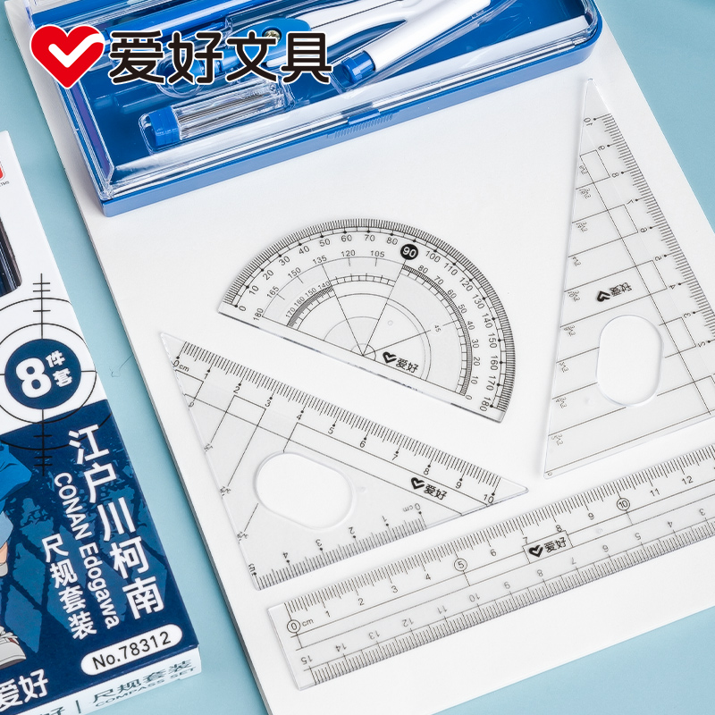 爱好名侦探柯南联名金属圆规直尺三角板尺子套装小学生专用创意高颜值开学文具初中生学生用多功能考试绘图男