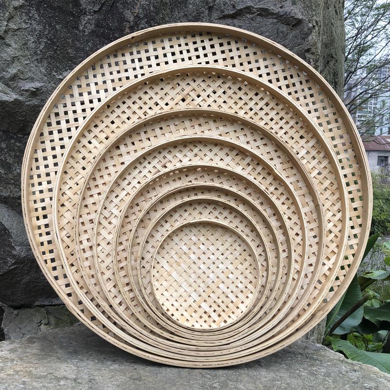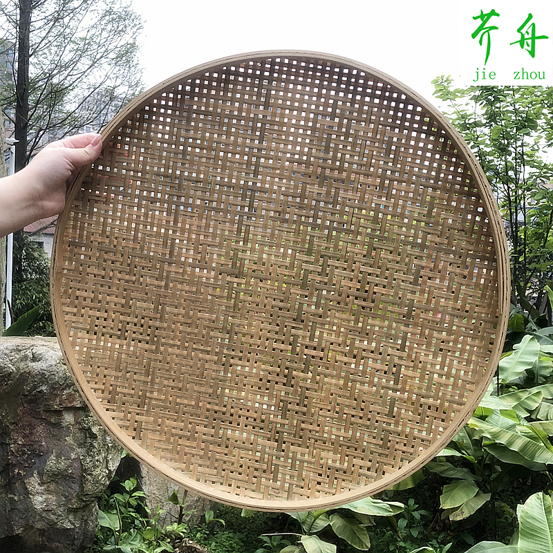 竹编晒盘簸箕有孔米筛子竹篮家用晾晒托盘装饰竹制品农家圆形竹艺