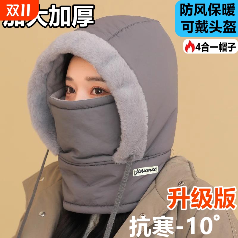 冬季骑车保暖帽子女护耳加绒加厚防寒面罩围脖一体帽防风骑行帽