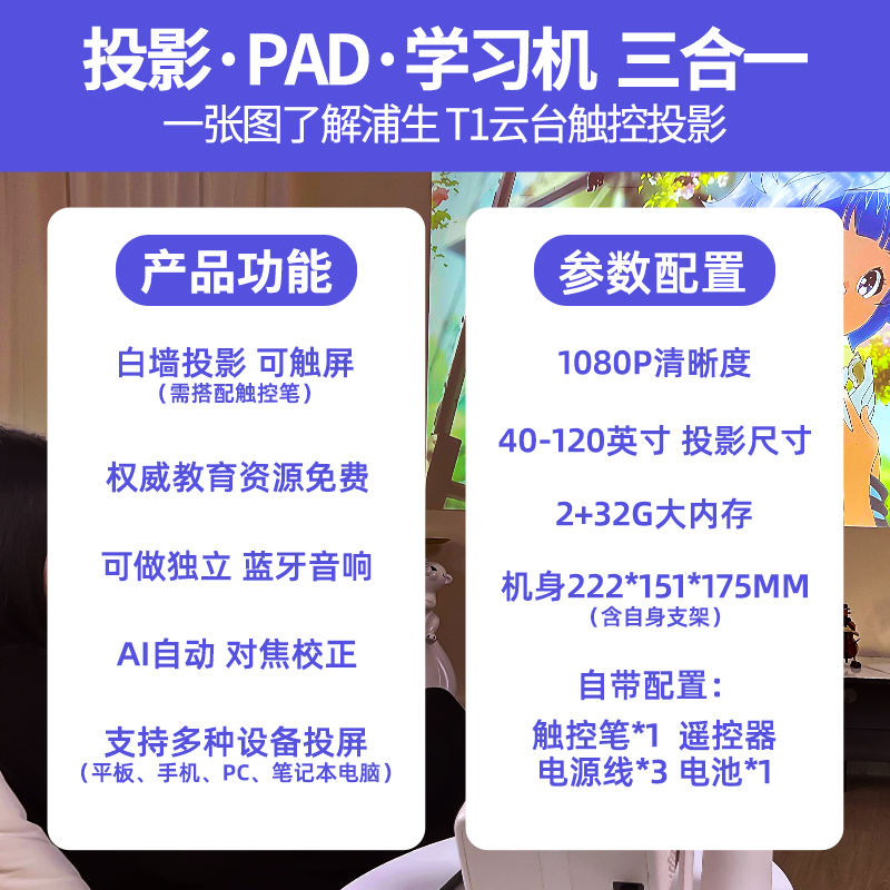 老爸评测浦生T1可触控投影仪家用高清白墙云台触屏投影仪