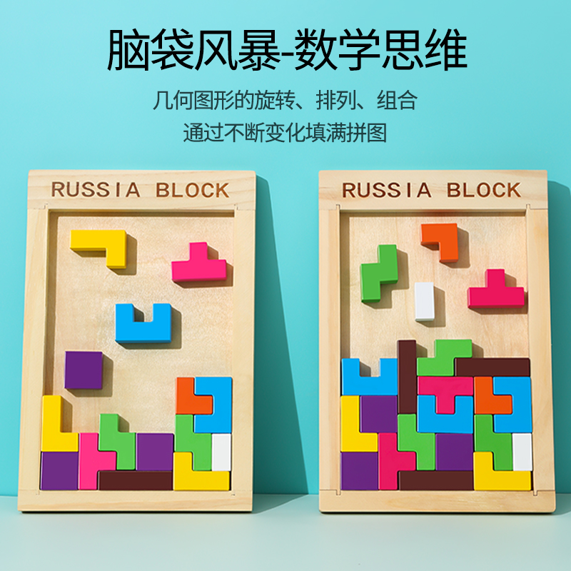 俄罗斯方块拼图积木制儿童早教益智力男孩女孩玩具拼板装巧板以上