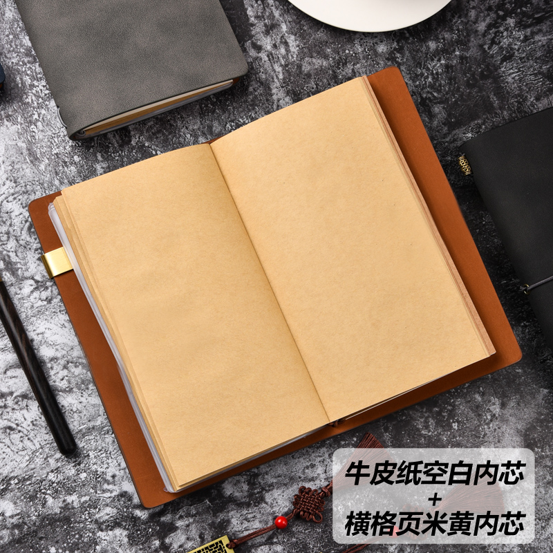 复古牛皮纸笔记本超厚空白本子加厚白纸本草稿本学习可平摊高颜值本记事本日记本a4a5小方格写作本大学生初中