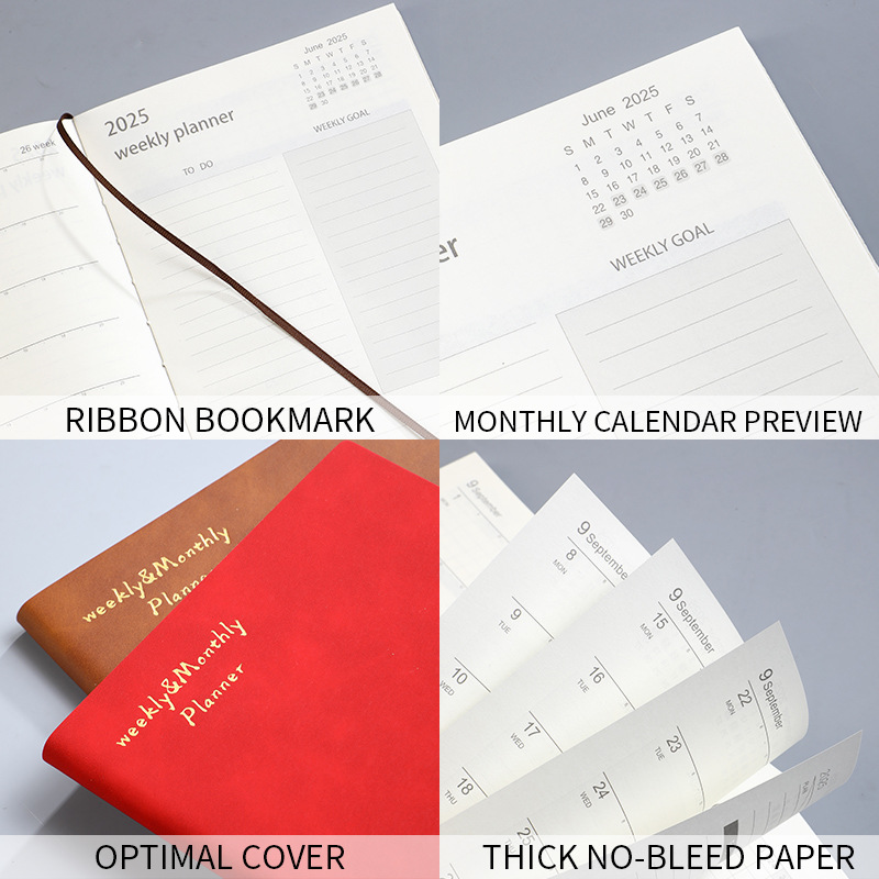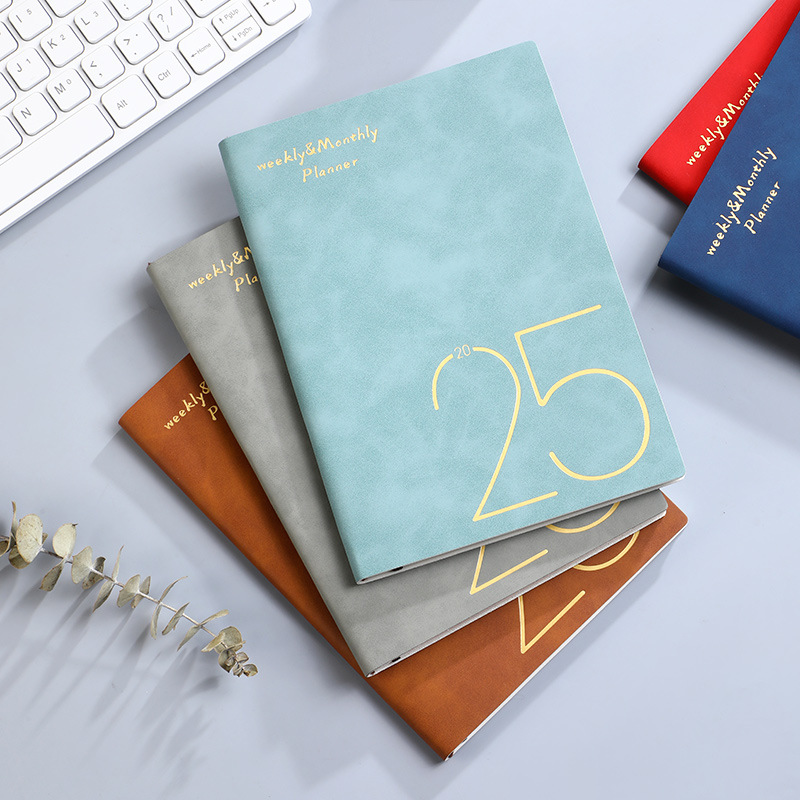 25年英文日程本高颜值简约ins跨境Planner周计划本A5每日计划本年历本外贸效率一日一页学习每日每月工作本
