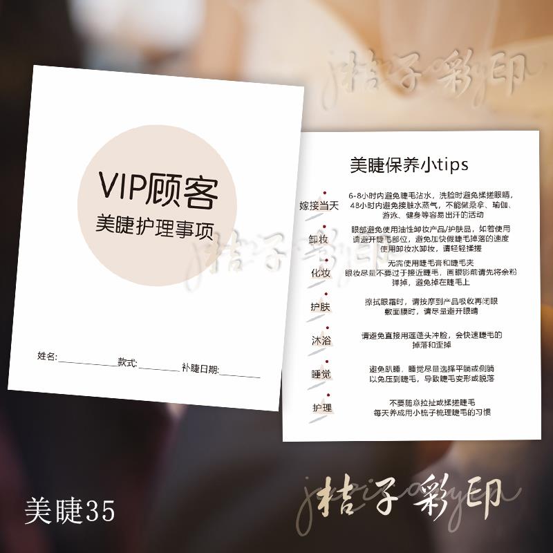 设计美睫嫁接睫毛护理卡片定制顾客售后保养卡注意事项种睫毛现货