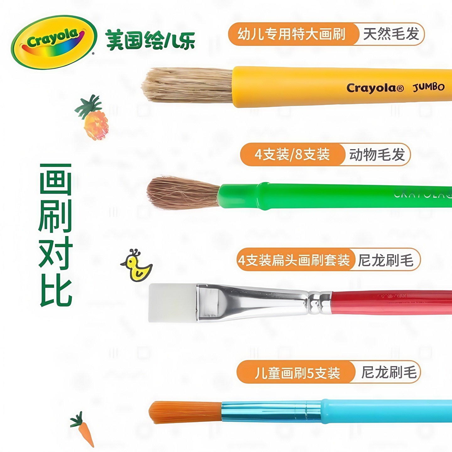 Crayola/绘儿乐颜料刷涂鸦工具油画刷子画画笔刷儿童幼儿园美术画刷