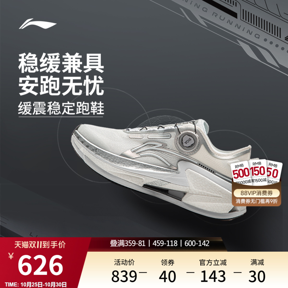 李宁越影Element丨 跑步鞋男支撑保护减震透气网面黑色轻便运动鞋