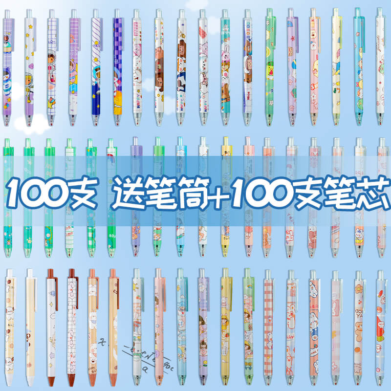 100支按动笔可爱超萌卡通中性笔高颜值手感好女生款ins风日系st笔头按动式学生专用圆珠黑水笔黑色好看的文具