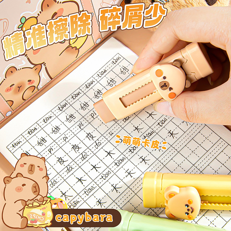 卡通儿童推拉橡皮擦小学生用铅笔擦美术画画涂改擦的干净少屑静音橡皮高颜值卡皮巴拉可爱文具节日奖品礼物
