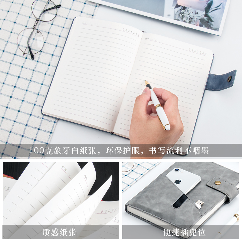 A5皮面笔记本本子商务记事本2024年新款工作笔记办公用会议记录本加厚简约实用商务礼品礼盒套装定制可印logo