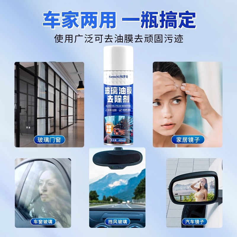 科罗奇汽车玻璃油膜去除剂前挡风玻璃强力去油污泡沫清洗剂去油膜