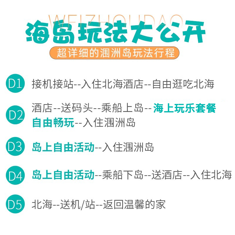 半自助游北海旅游涠洲岛5天4晚上岛船票乘船海上项目自由玩海五日