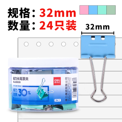 得力彩色长尾夹票夹 金属燕尾夹蝴蝶夹财务票据文件夹子办公用品