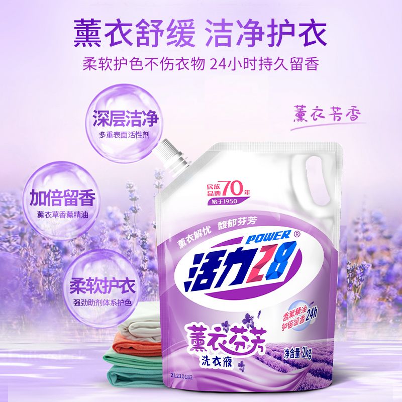 活力28洗衣液薰衣草2kg官方正品家庭持久留香家用防串色实惠衣物