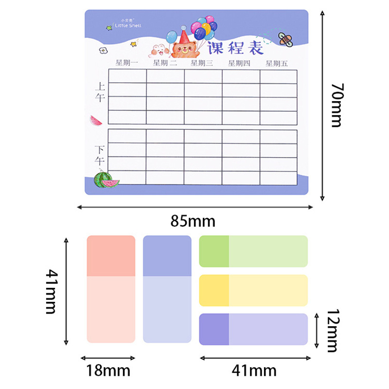 小贝壳课程表贴纸学生用带粘性可粘贴自粘易书写学习好帮手