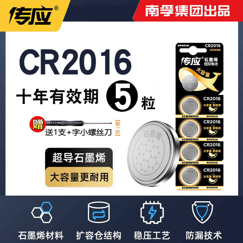 南孚传应纽扣电池CR2032/CR2025/CR2016石墨烯锂3V汽车钥匙遥控器