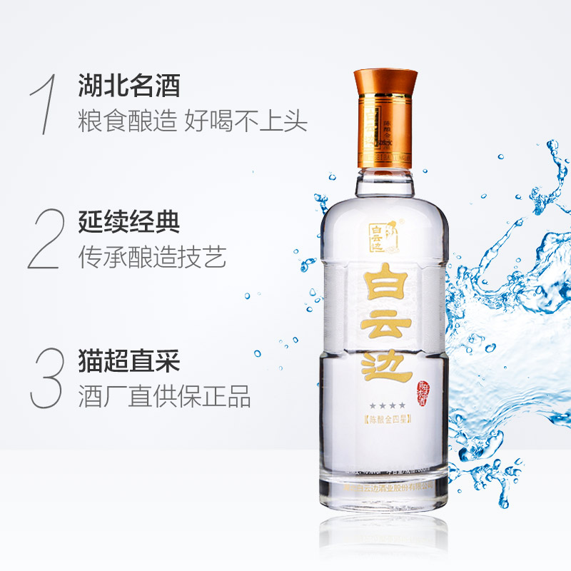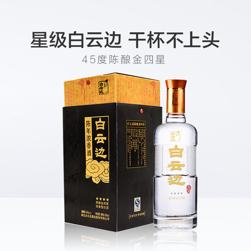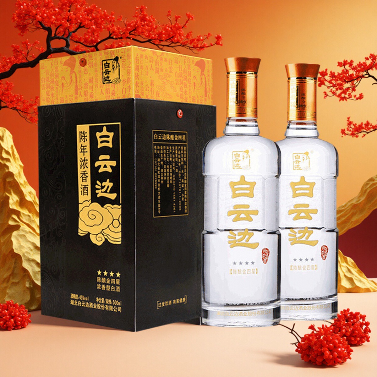 白云边陈酿金四星白酒45度500mL 浓香型 纯粮酒口粮酒 2瓶送礼袋