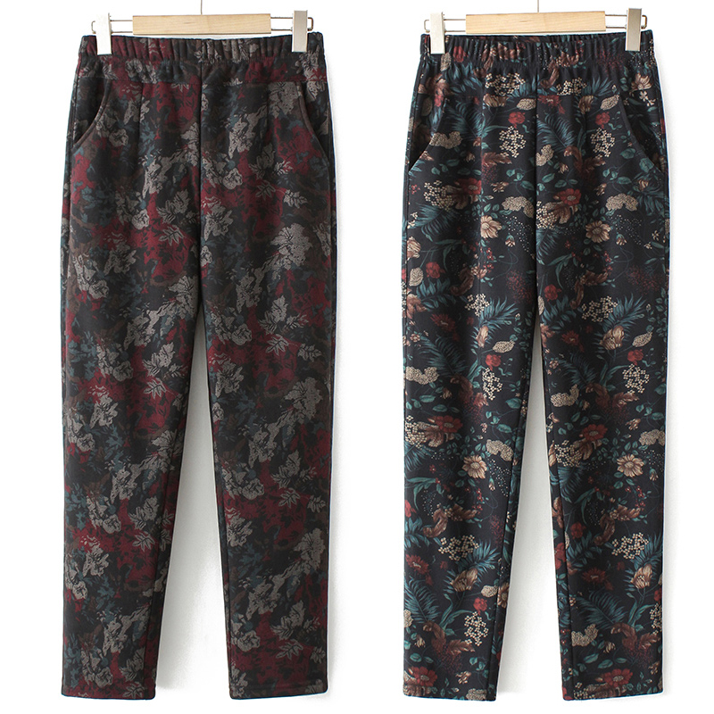 中老年人秋季宽松大码妈妈裤子高腰秋冬奶奶花裤子外穿太太松紧