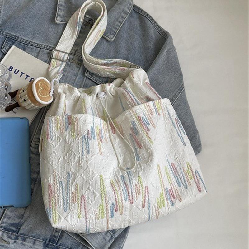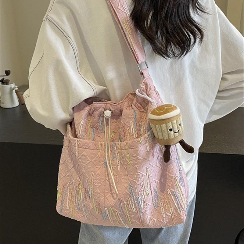 夏季帆布包包女新款休闲百搭通勤单肩托特包学生上课大容量斜挎