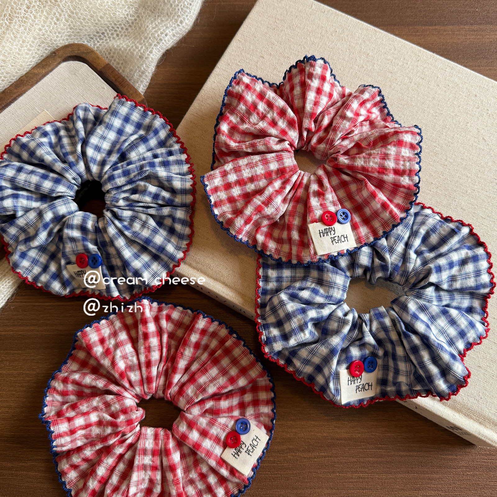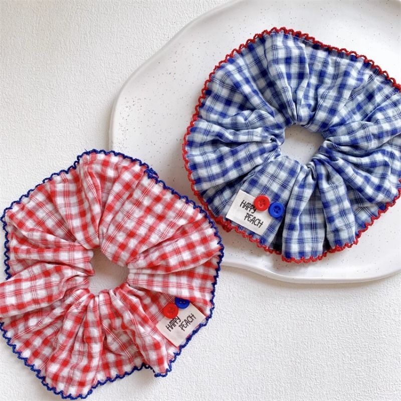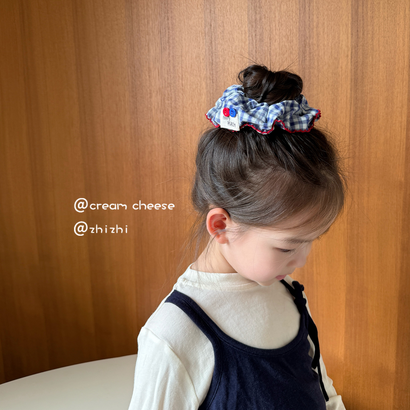 韩学院风花边格子大肠圈儿童秋冬布艺甜美发圈宝宝高马尾发饰头绳