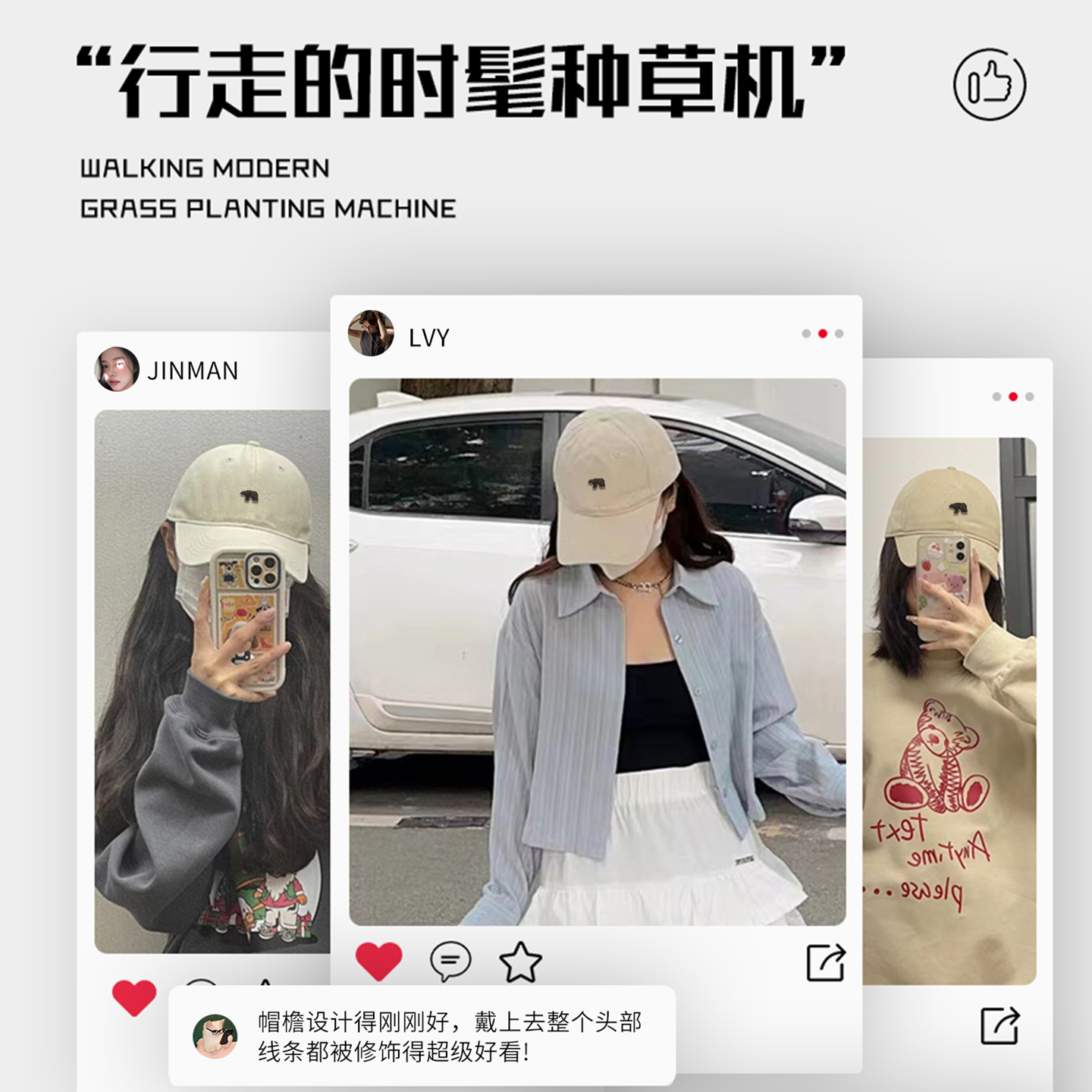 美式复古字母灰色棒球帽女高级感宽檐大头围显脸小百搭鸭舌帽子男
