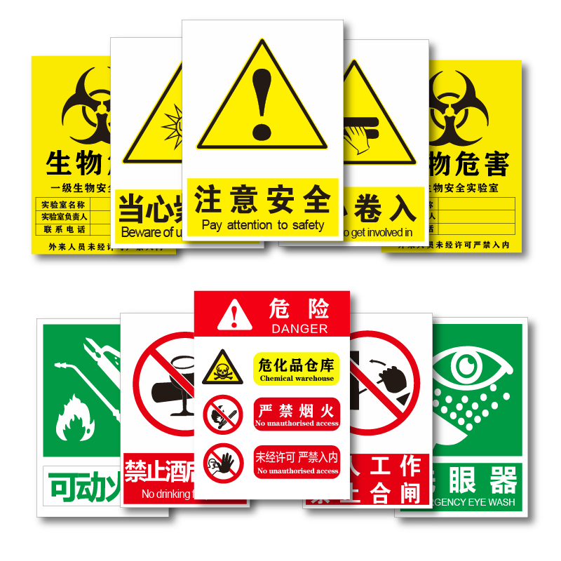 实验室安全警示牌全套生物危害一级二级生物安全警示牌化学品标识化学实验室BSL12当心灼伤中毒腐蚀标志贴纸
