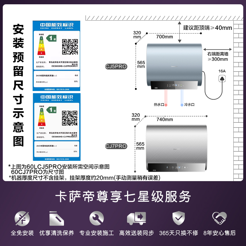 [政府换新补贴]卡萨帝电热水器官方家用双胆扁桶变频富锶CJ5PRO