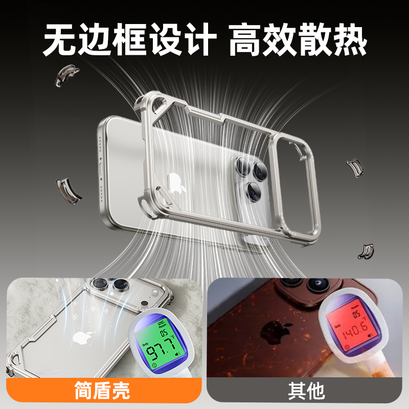 EARY适用苹果17Promax手机壳金属无边框iPhone16Pro外壳铝合金Air保护套15后壳超薄纯镂空磁吸散热高级感新款