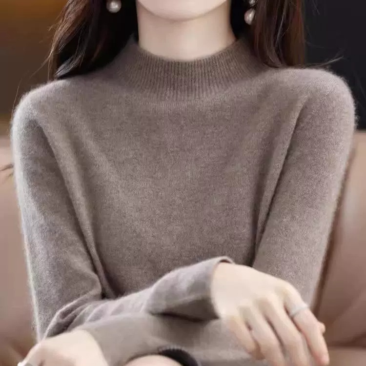 高级感羊毛衫女半高领宽松毛衣秋冬加厚羊绒长袖针织打底衫