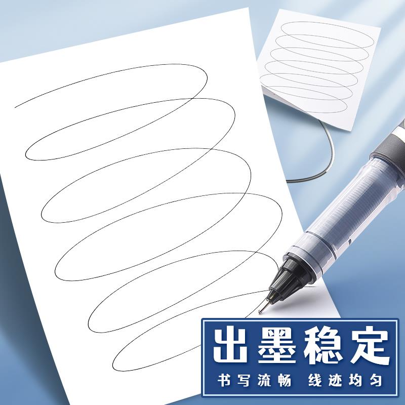 得力直液式走珠笔速干大容量直液笔0.5黑色中性笔学生用速干刷题笔水性笔直液笔圆珠笔商务办公简约风笔杆