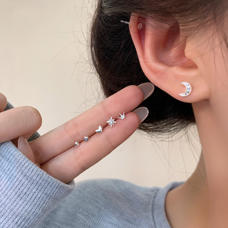 999纯银耳钉女养耳洞耳骨钉小众高级感锆石耳蜗钉水钻耳环银耳饰