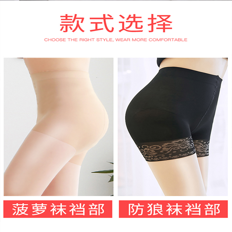 防狼袜二合一安全裤菠萝丝袜女薄款春秋网红防勾丝大码黑色夏季款