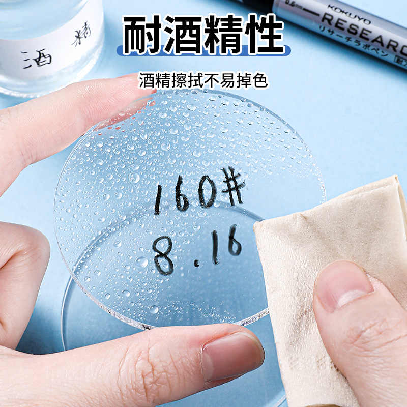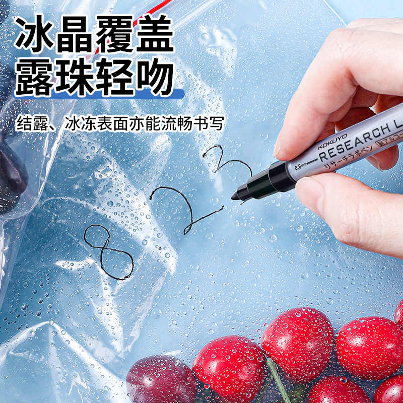 日本KOKUYO国誉油性记号笔学生实验室常用黑色红色0.6mm细头防溅水耐酒精墨水冰袋食品袋标记签字笔不易掉色
