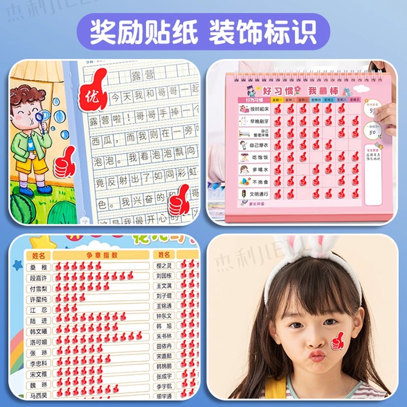 大拇指鼓励贴纸儿童自律奖励贴纸表扬乖宝宝小贴画小学生幼儿园评优粘贴作业批改评比可爱拇指点赞图案标签贴