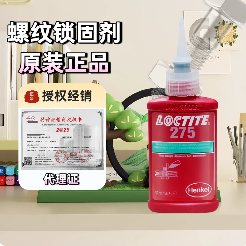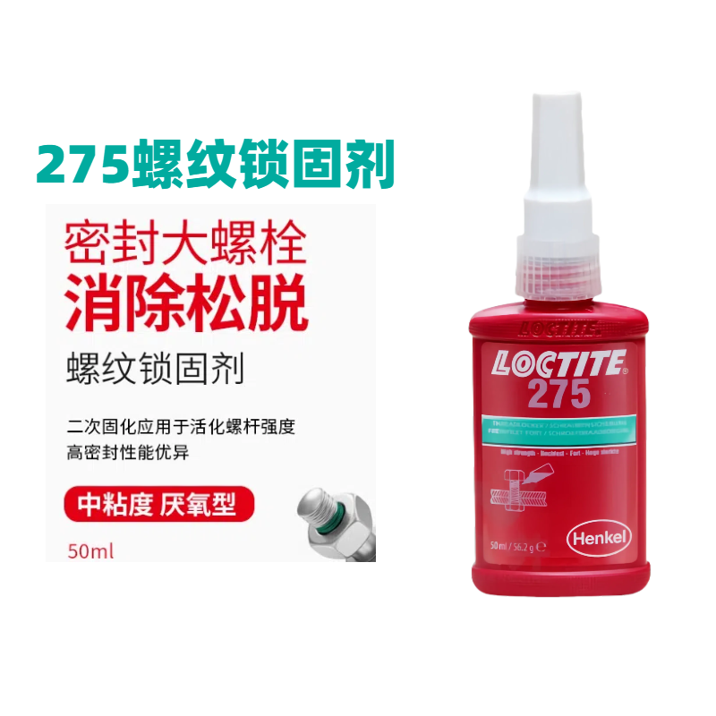 汉高乐泰275胶水螺纹锁固密封大螺栓紧固件loctite中等粘度厌氧固化活化螺杆强度高密封 防冲击振动松动泄漏